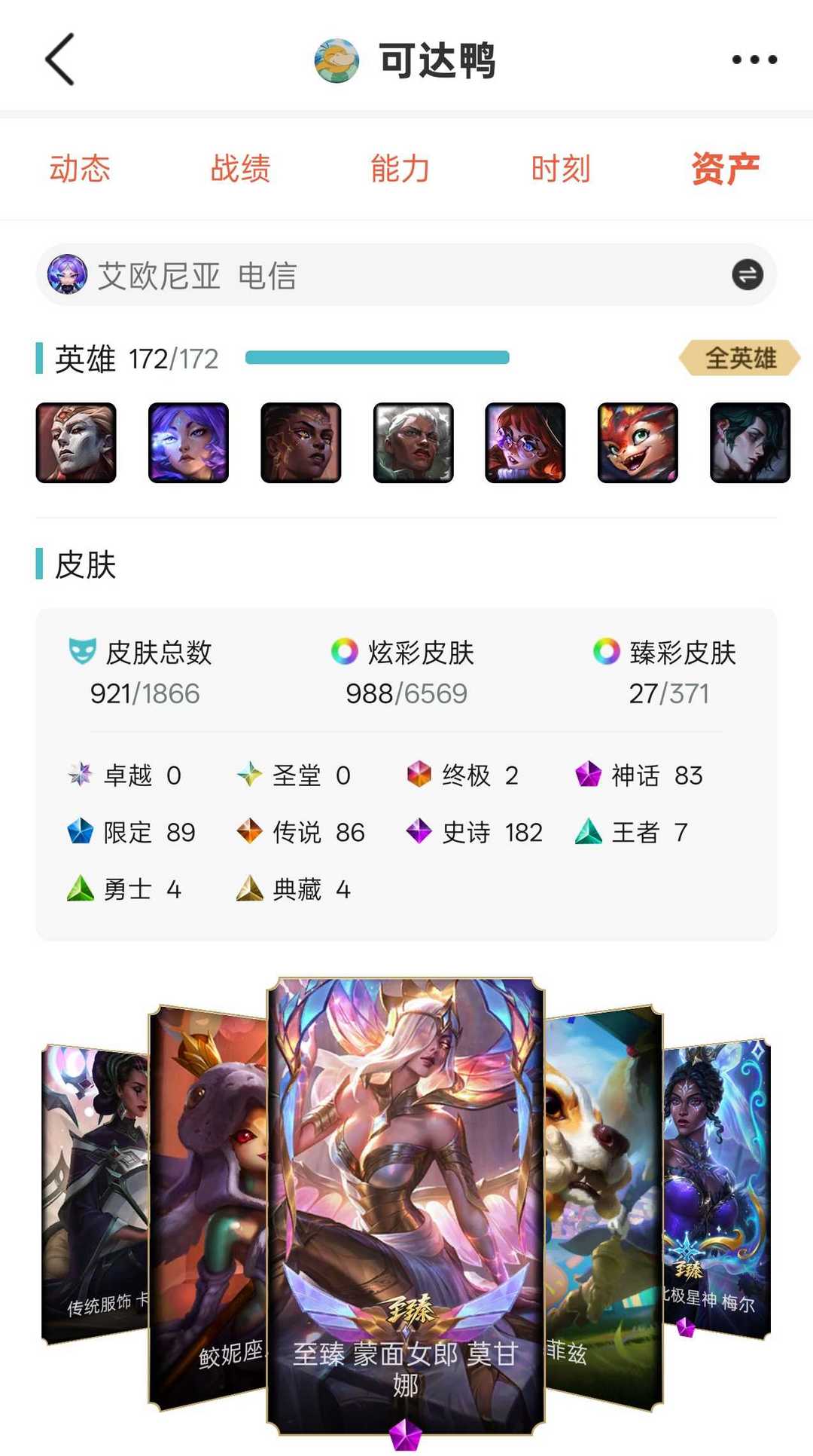 【艾欧尼亚】920原皮+988炫✨80至臻神话⚡彩虹马⚡泳池佐伊⚡鸡里奥⚡北辰之威⚡美猴王⚡永森奥恩
