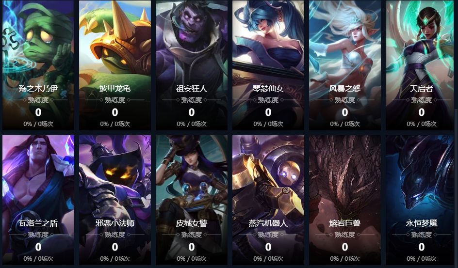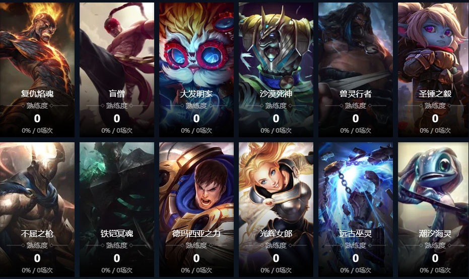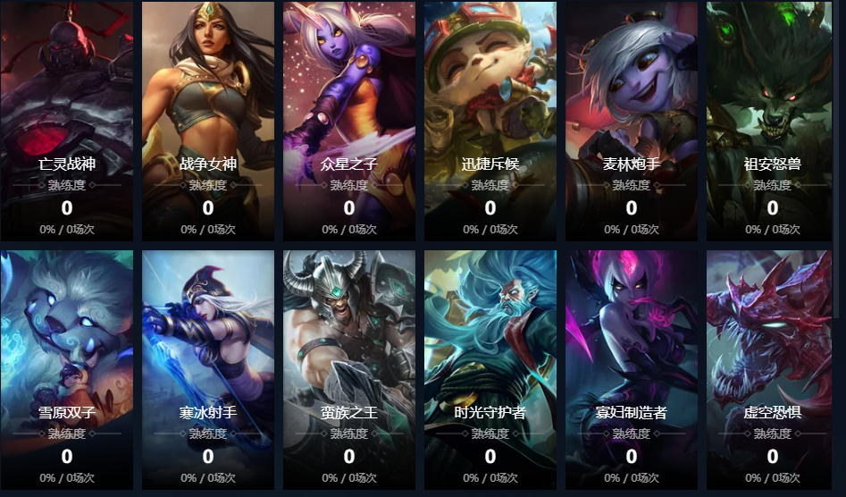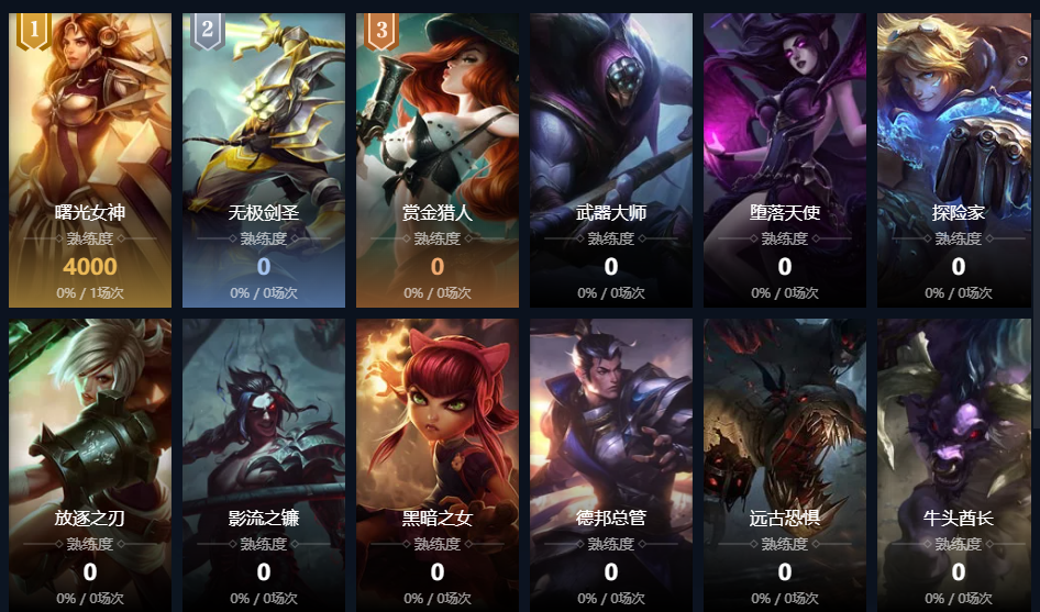 盲僧;炽炎雏龙;虚空之女;皮城女警;寒冰射手;放逐之刃;黑暗之女;德邦总管;远古恐惧;正义天使;无极
