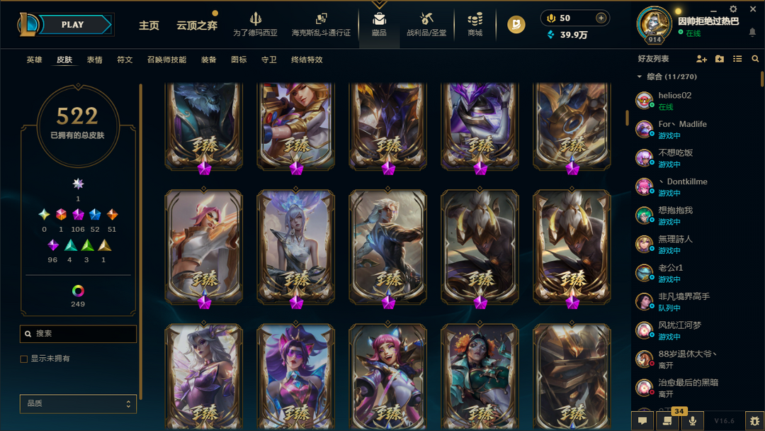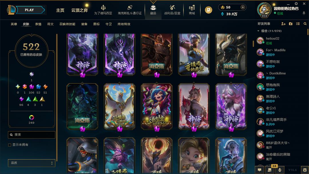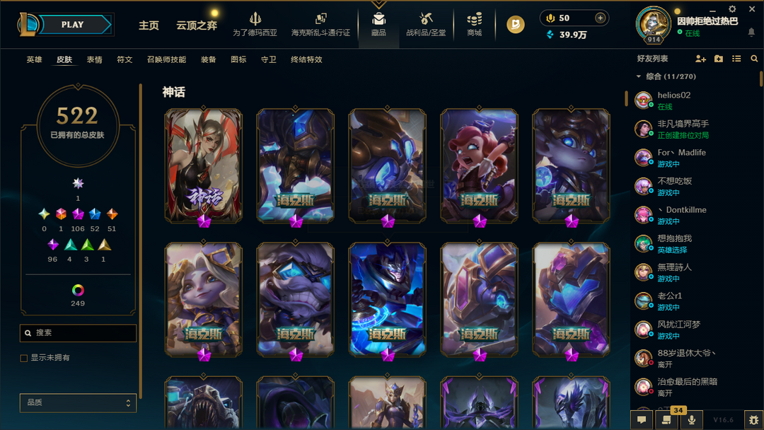 装备描述:肥号!!!良心号主!原皮522、106神话皮肤、全英雄、可打排位!! 小店在这祝您游戏愉快,喜欢的点击收藏❤记得给小店个五星好评噢❤❤❤❤❤