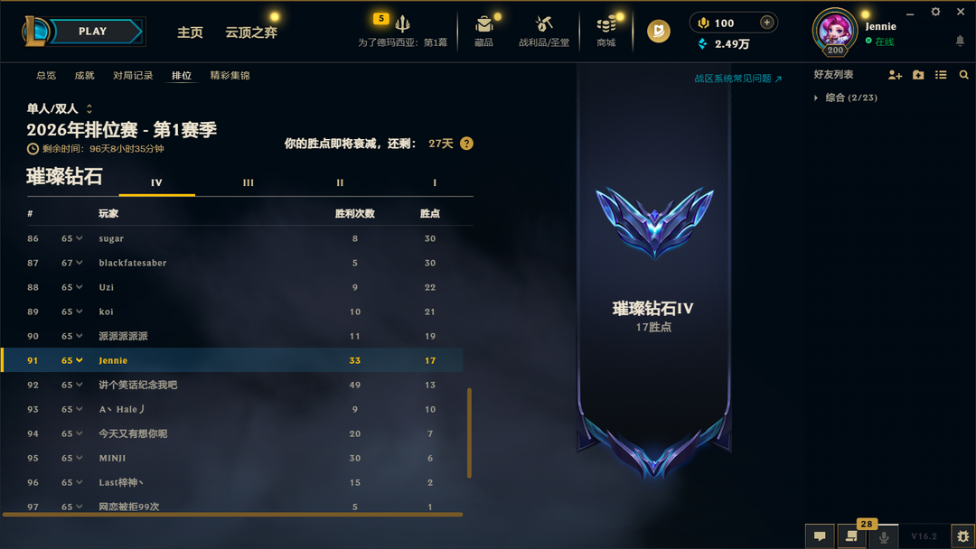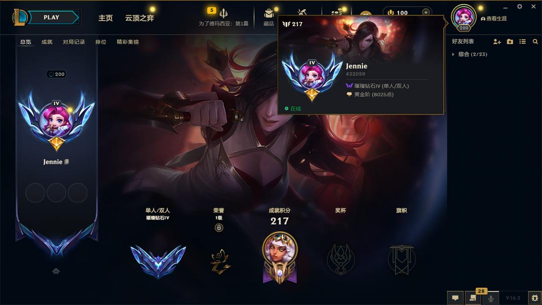 段位:211级 璀璨钻石IV