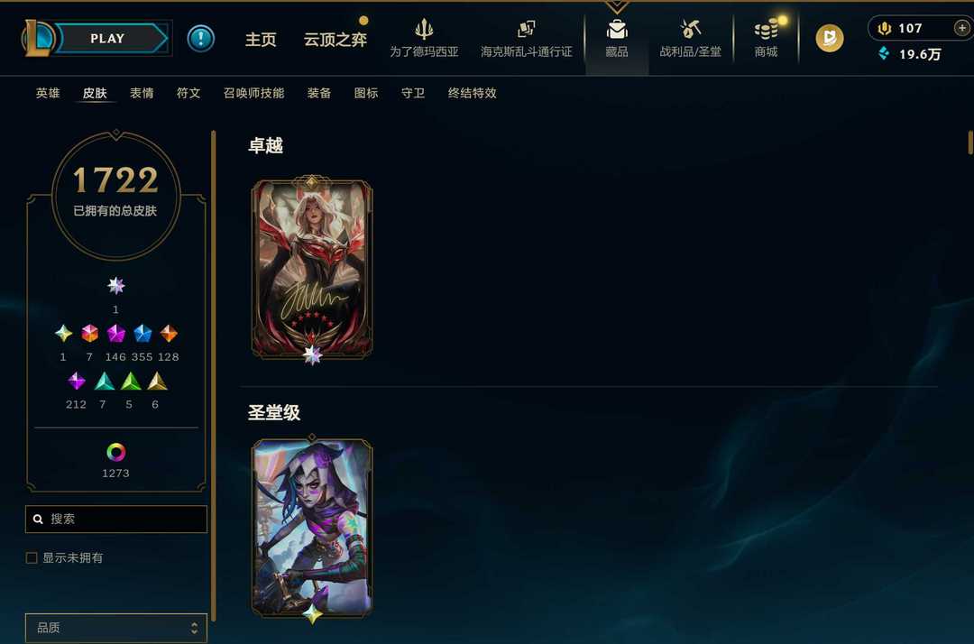 1722原皮+1273炫⚡签名狐狸圣堂金克丝⚡全至臻全终极皮⚡神话烬盲僧⚡️斗魂弗耶戈瑟提