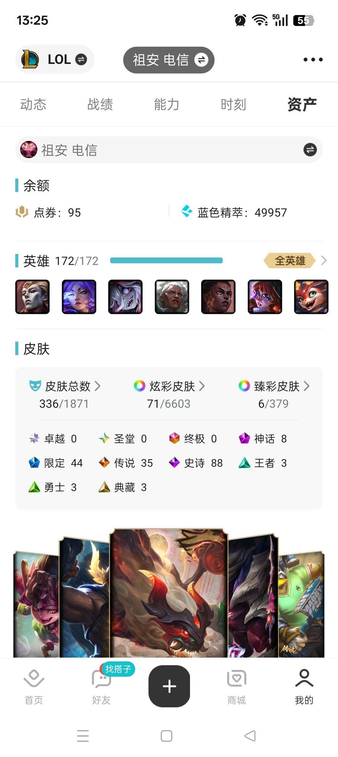各种优质限定皮肤 全英雄 优质号西部魔影 炫彩劫盲僧龙年限定
