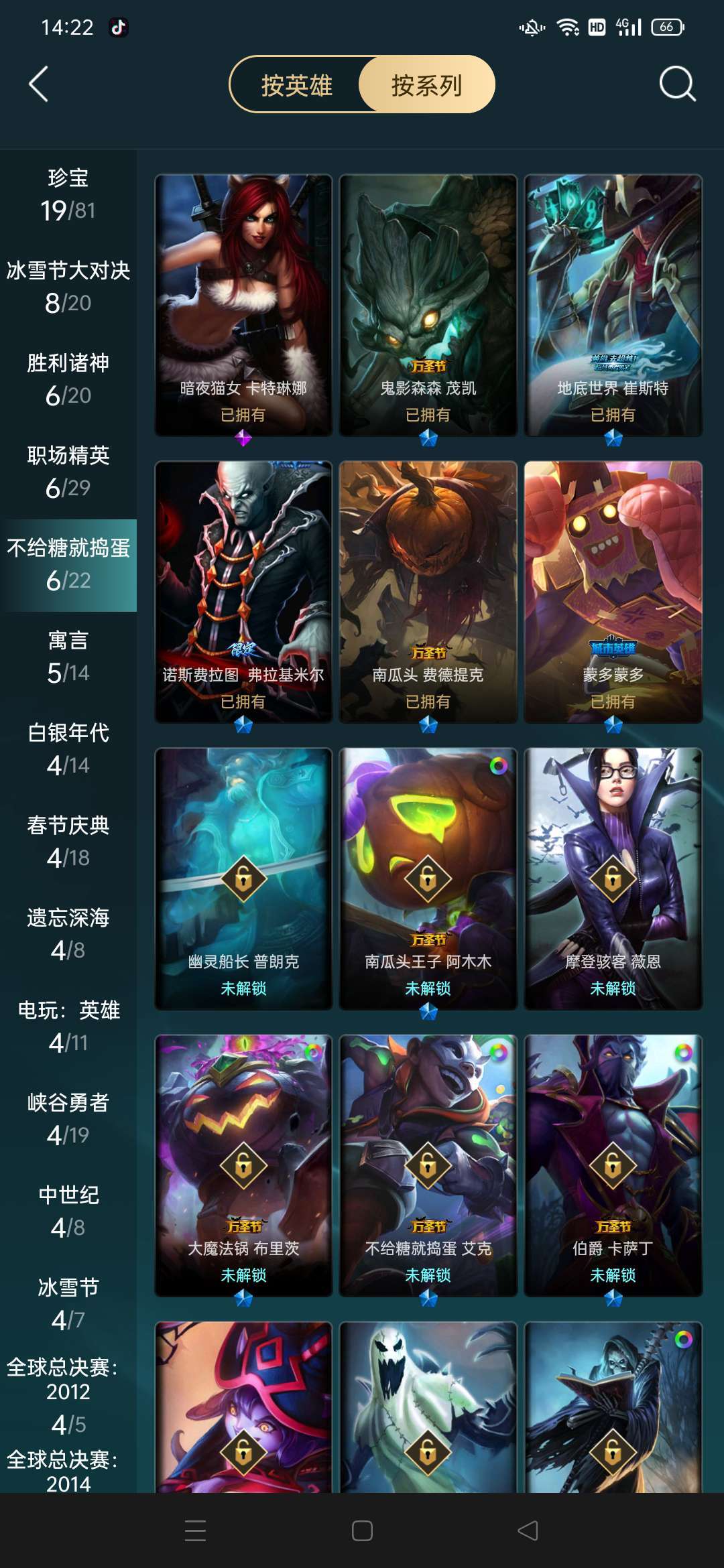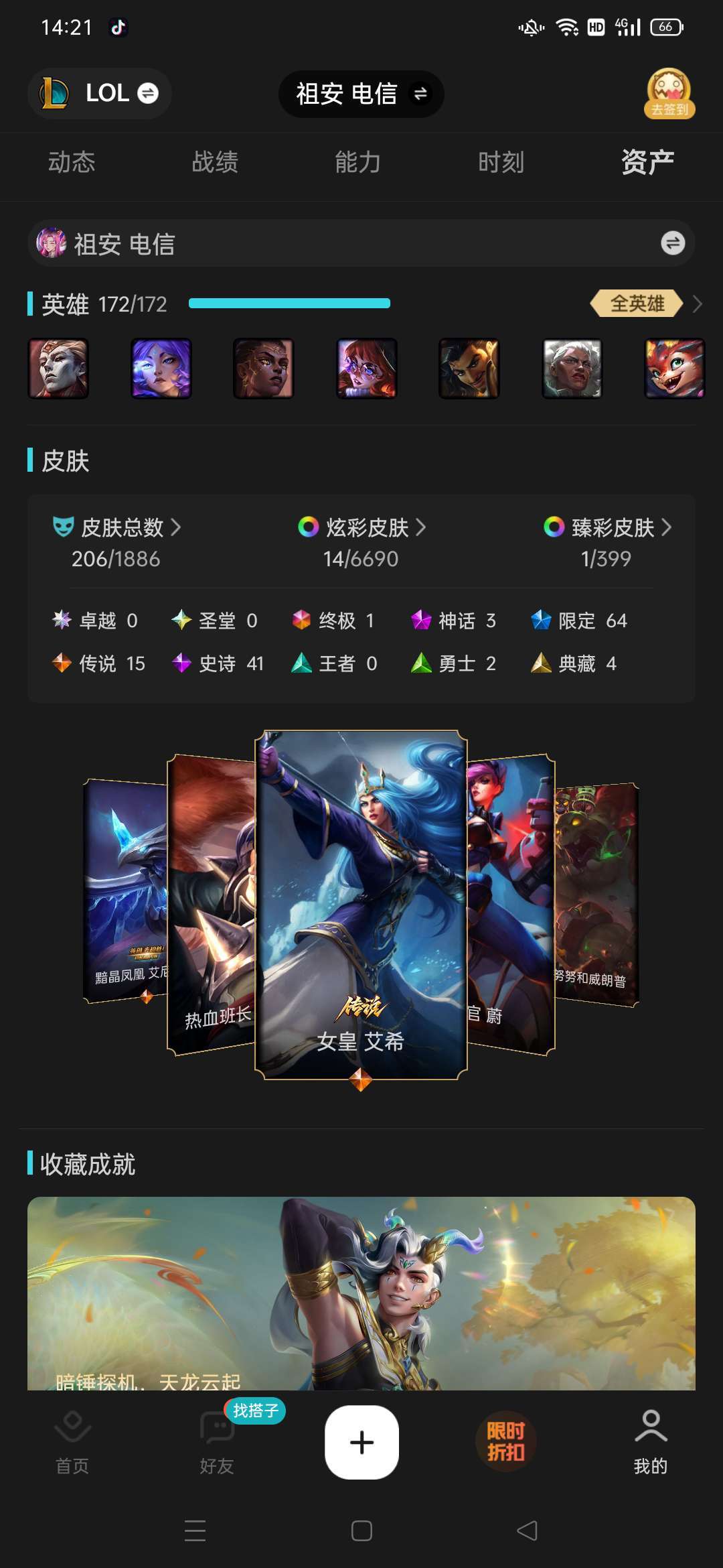 祖安和诺克萨斯都有角色,主号为祖安区皮肤还算凑合多半为限定皮肤,诺克萨斯只有个龙虾和海克斯乌鸦