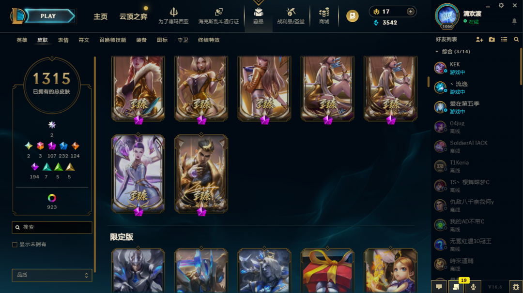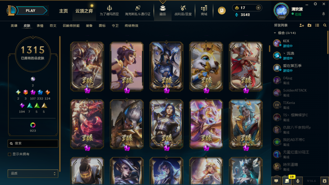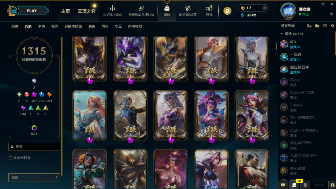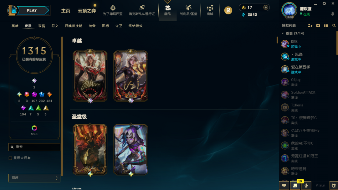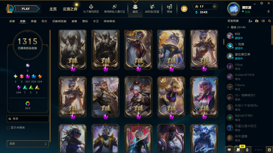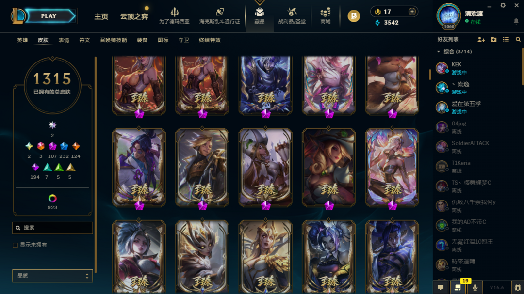 1315原皮不朽阿狸不朽卡莎圣堂铁男、金克斯、龙王极境飞跃卡莎、剑姬、vn斗魂觉醒沙弥拉