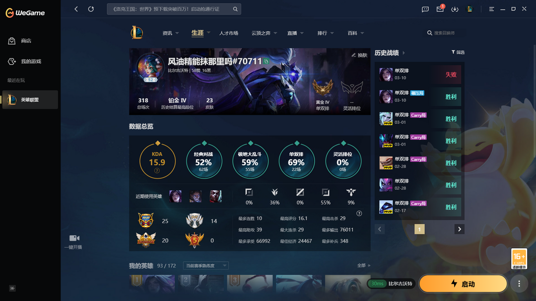 段位:54级 荣耀黄金III级 荣耀黄金III