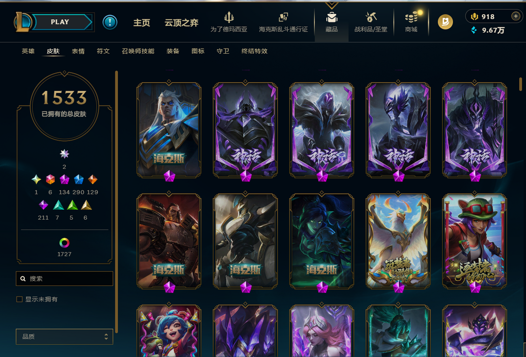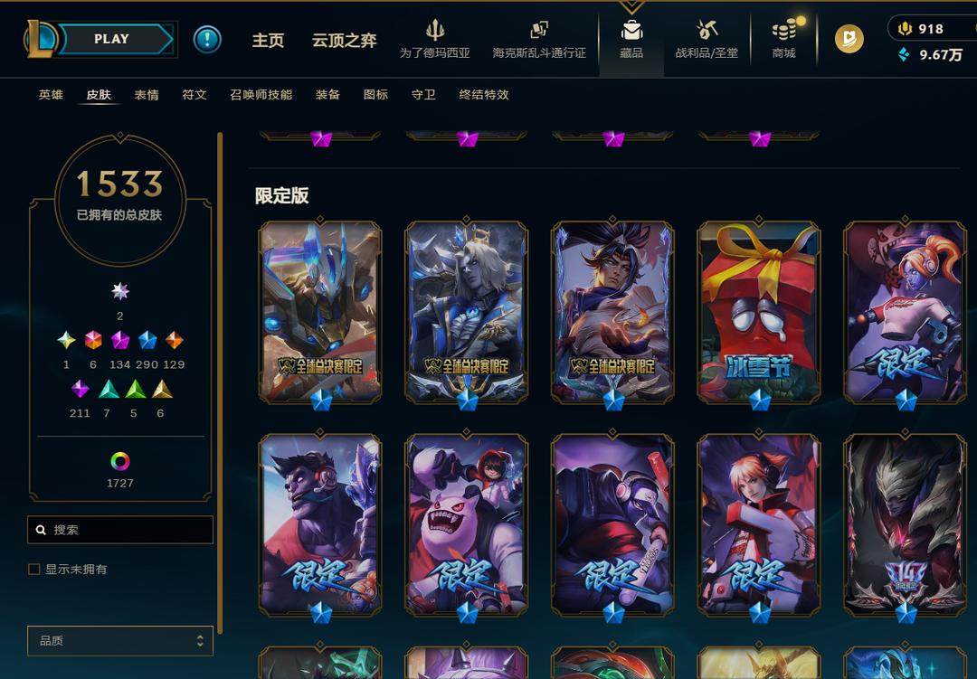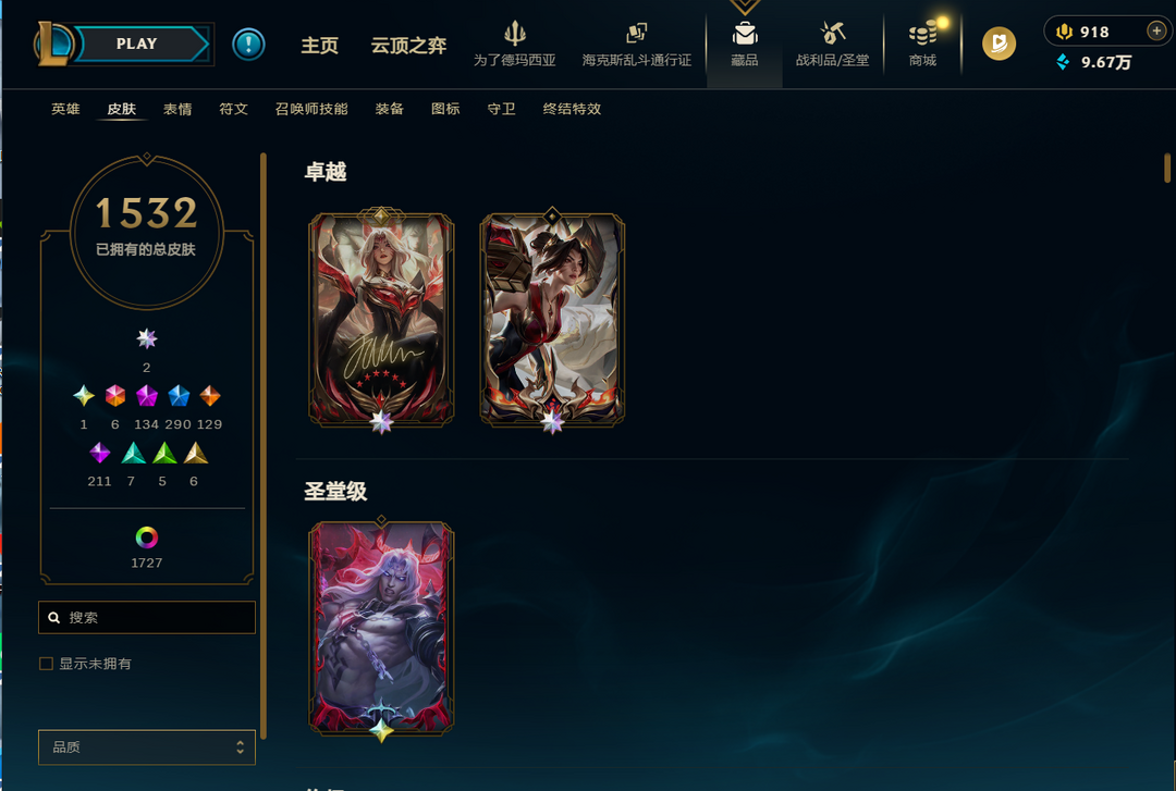 ❤️1532+1727名人堂阿狸签名版❤️圣堂佛耶戈❤️全套踏雪寻梅❤️神话亚索神话永恩❤️多臻彩❤