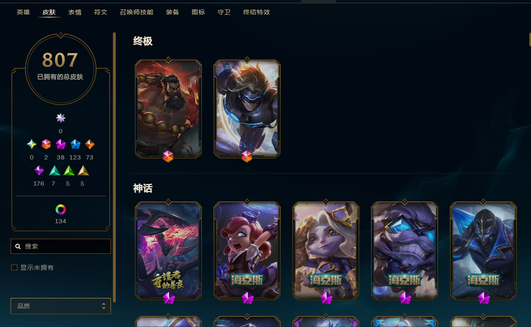 807原皮 184炫彩 臻彩13 2终极38神话128限定皮肤尽情玩耍