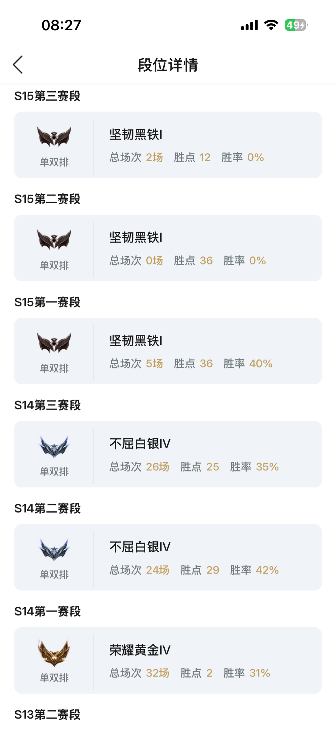 段位:583级 当前赛季无级 当前赛季无