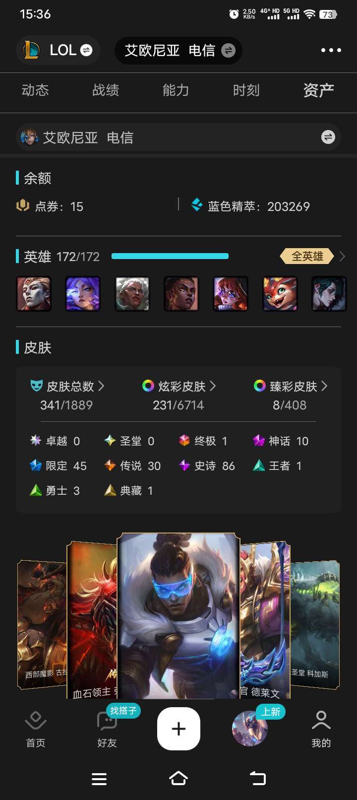 300+皮肤双至臻卡莎 未来战士ez 御剑仙男刀 全英雄 适合和朋友开黑