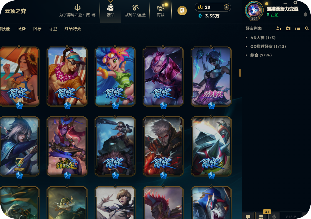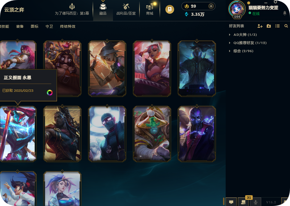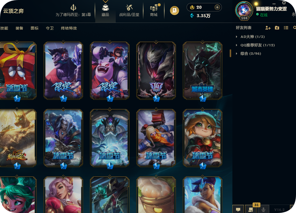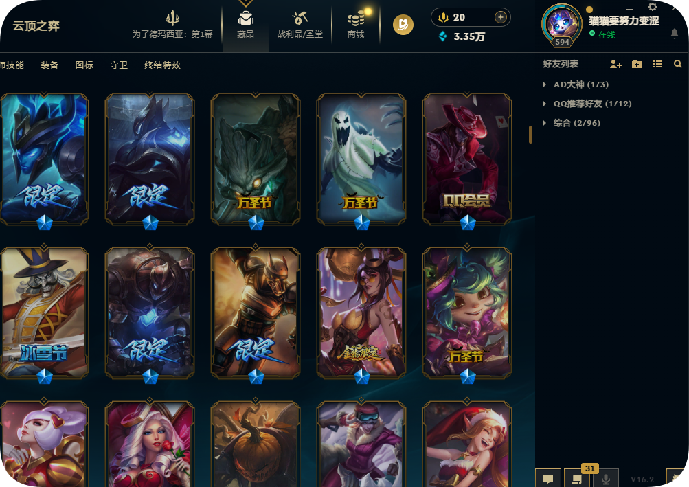 2000皮肤黄金可排位殿堂传奇VN战熊骑士灵魂亚索劫SKT鳄鱼灌篮黎明正义假面永恩KDA阿卡丽冰雪套