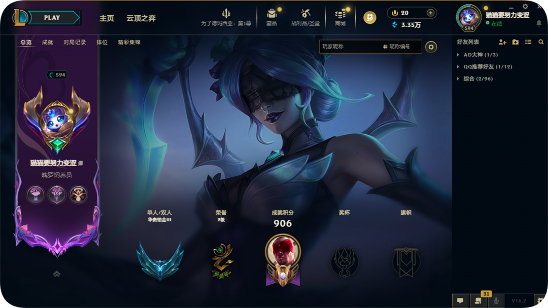 段位:595级 华贵铂金II