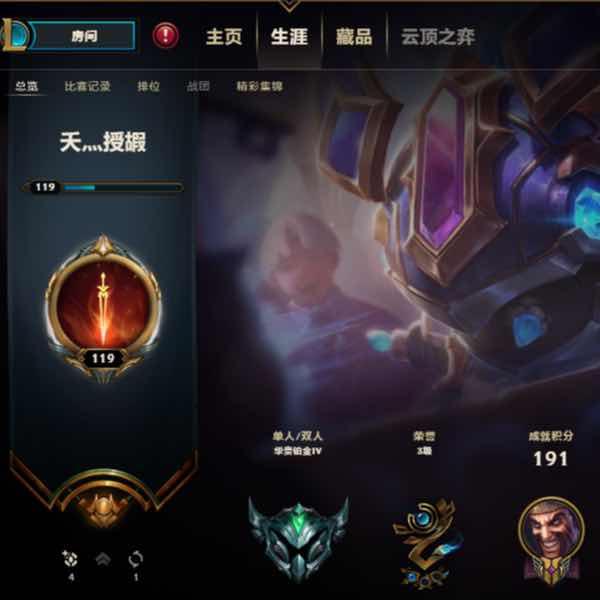 段位:119级 华贵铂金Ⅳ