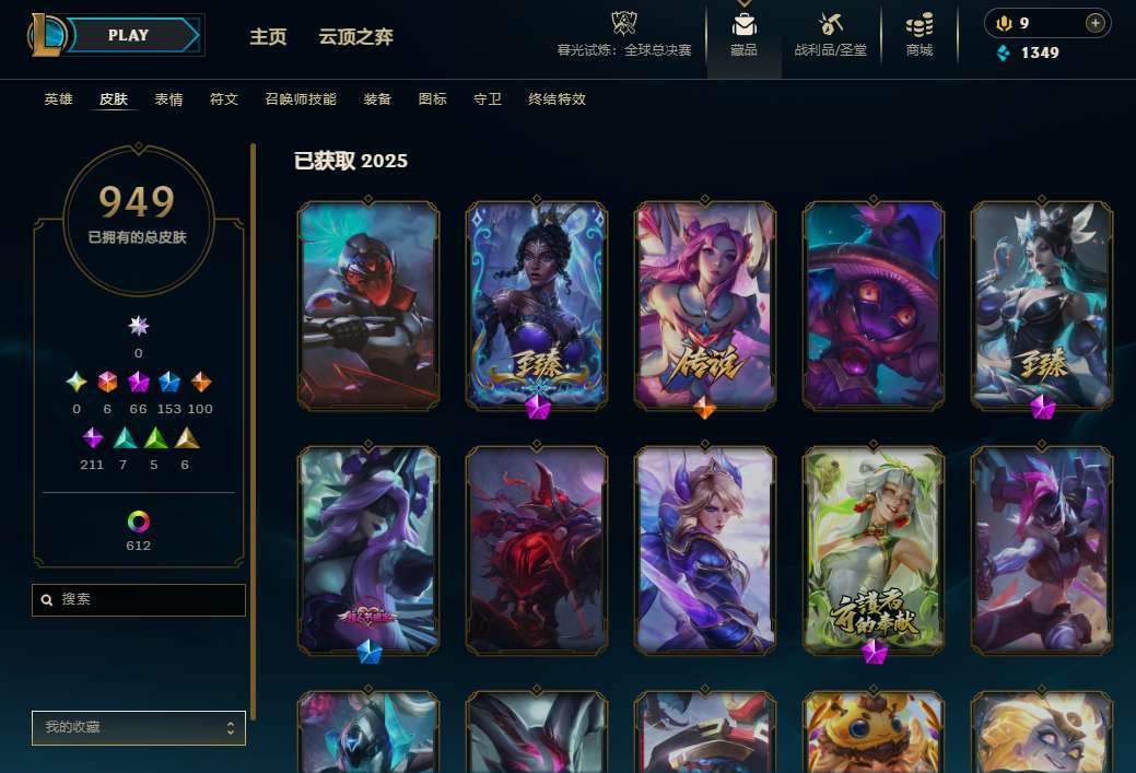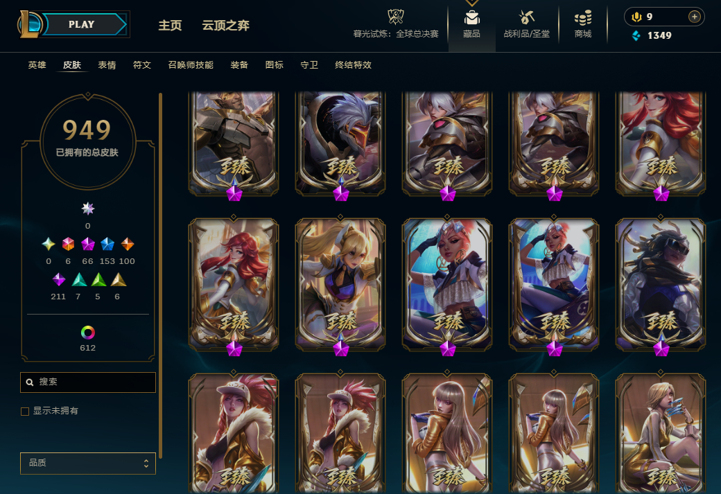 联盟二区 全英雄 妹子号 原皮900+炫彩600+ 可排位