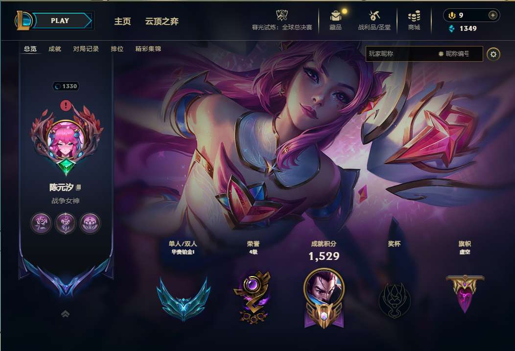 段位:1330级 华贵铂金IV