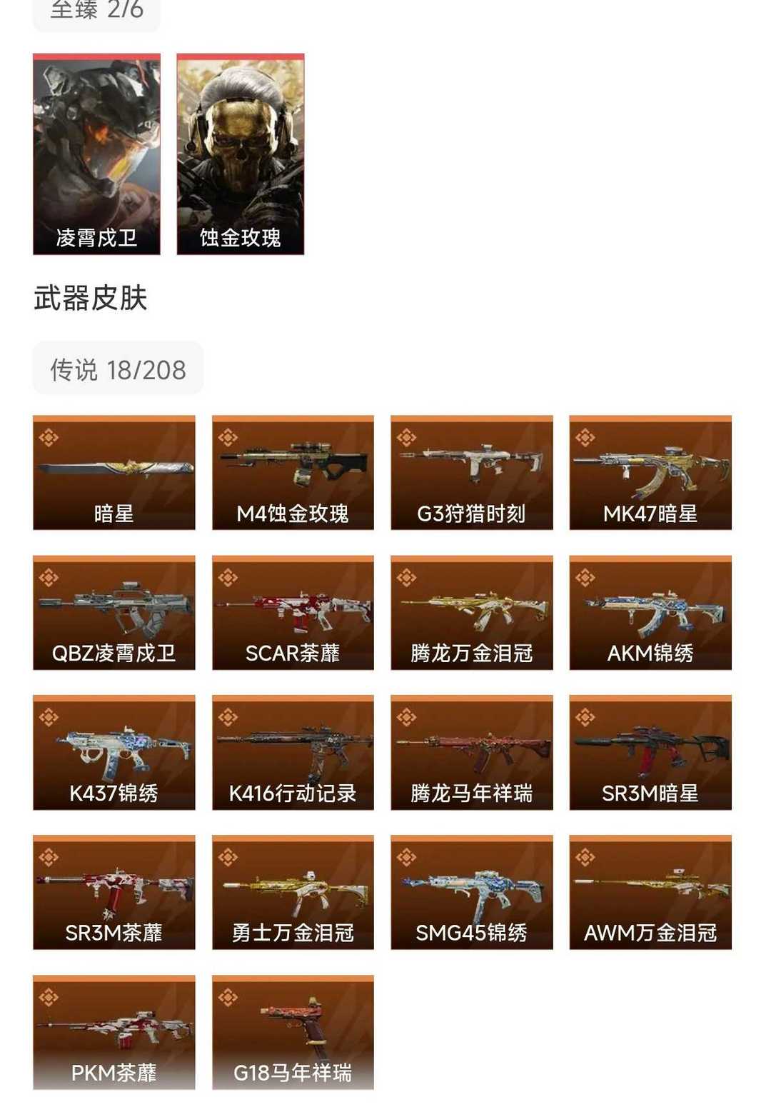 皮肤号 暗星凌霄戍卫,蚀金玫瑰20款传说枪皮,安卓苹果区