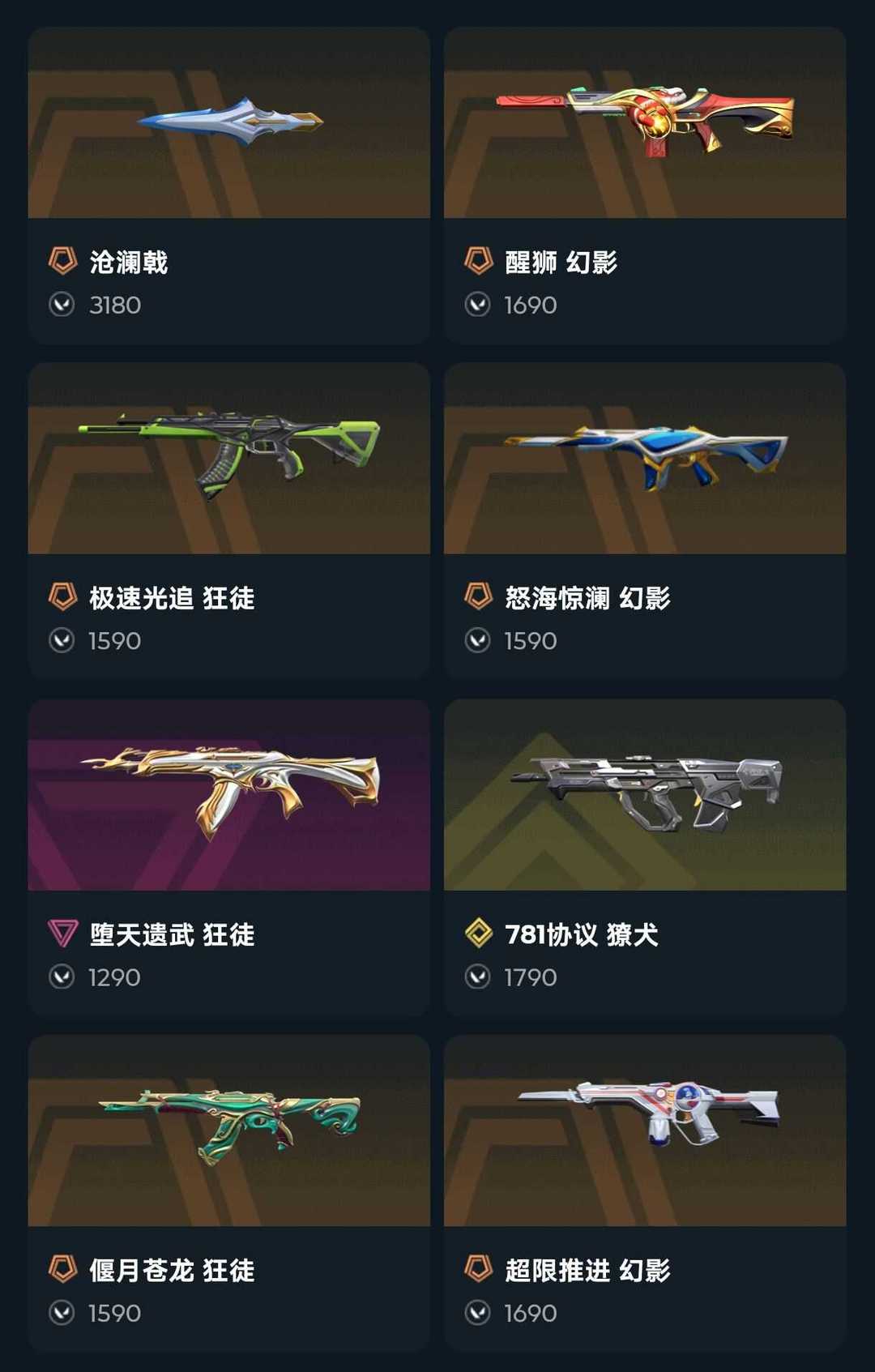 满级皮肤⭐沧澜戟狂徒偃月苍龙堕天遗武,极速光追⭐幻影超限推进,醒狮,怒海惊澜⭐獠犬781协议