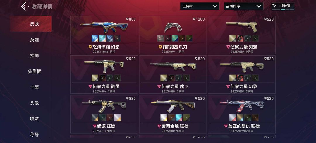 VTC爪刀满特效✅炫彩侦查幻影满特效✅炫紫金、盖亚、起源狂徒满特效✅炫怒海幻影满特效✅堕天冥驹满特效