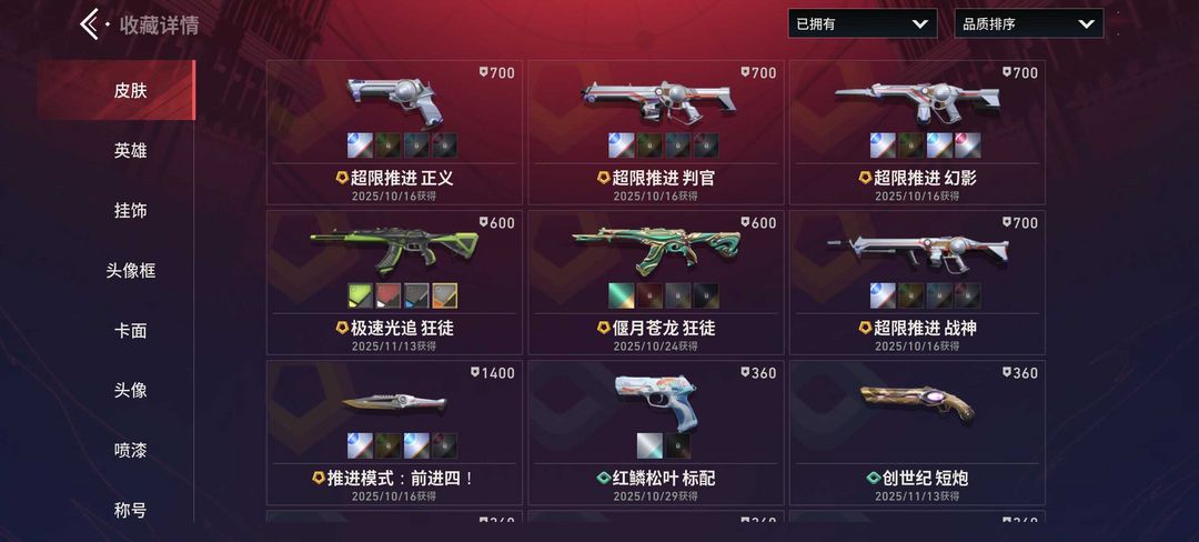 全色炫彩极速光追狂徒满特效✅偃月苍龙狂徒满特效✅炫彩超限推进幻影满特效✅超限推进全套满级