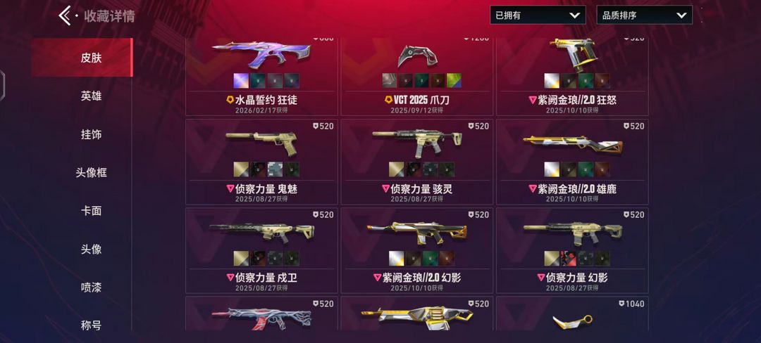 【包天特惠】观察期☀侦查幻影☀水晶誓约狂徒☀紫金2.0全套☀盖亚狂徒炫彩☀VTC爪刀☀蝴蝶刀