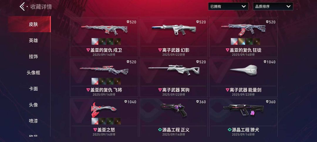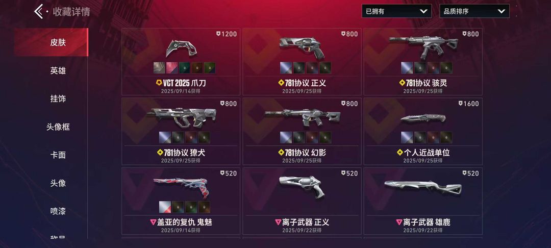 观察期23级收藏家 VCT爪刀 781协议全套 离子武器全套 盖亚的复仇全套 23个英雄