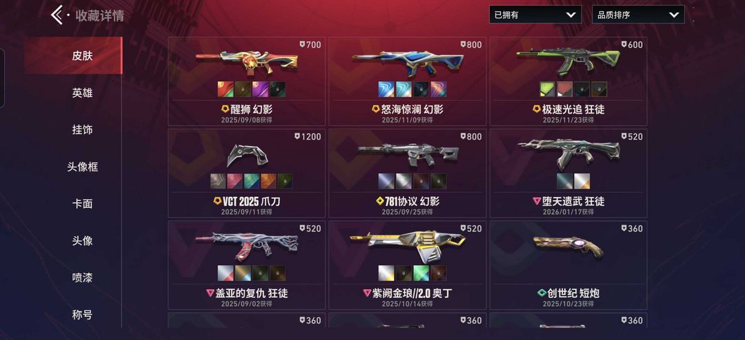 VCT爪刀❤️盖亚+显卡+堕天狂徒❤️醒狮+781+怒海惊澜幻影❤️紫阙金琅奥丁❤️开挂必究!!!