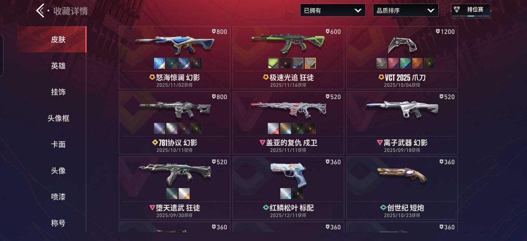 VCT爪刀❤显卡+堕天遗武狂徒❤781协议+离子+怒海惊澜幻影❤盖亚戍卫❤开挂必究!!!