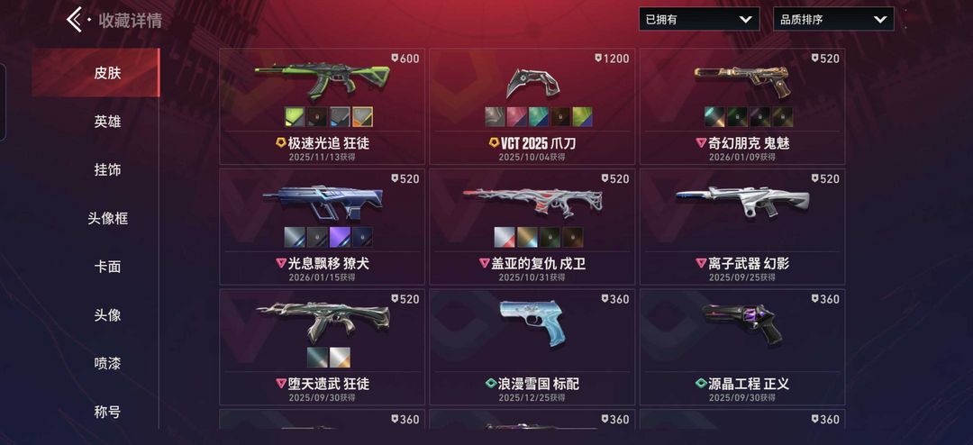 VCT爪刀❤堕天遗武+显卡狂徒❤离子幻影+光息漂移獠犬❤盖亚戍卫+奇幻朋克鬼魅❤开挂必究!!!