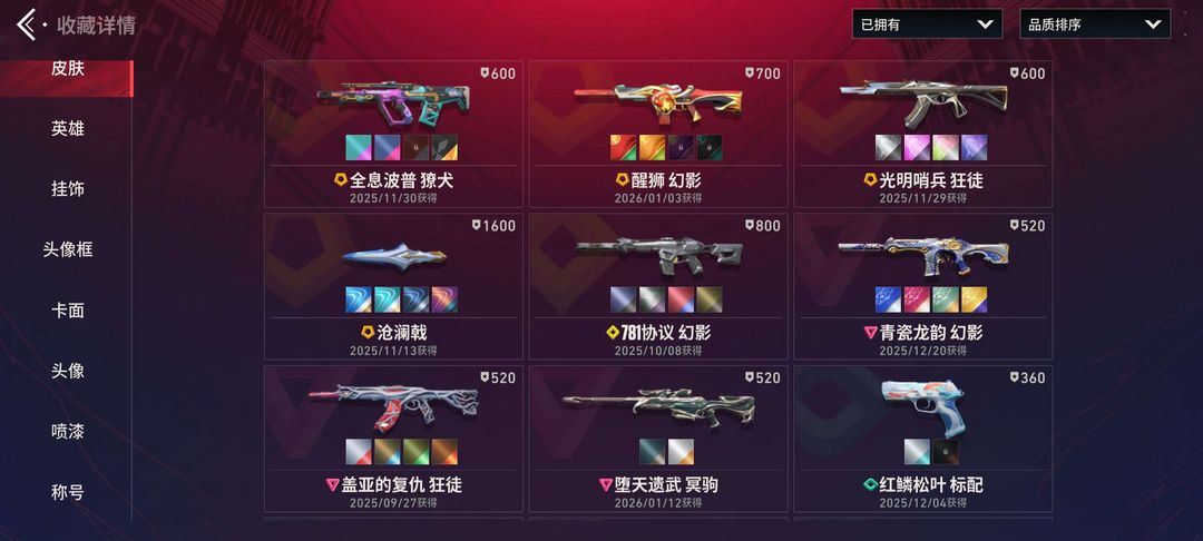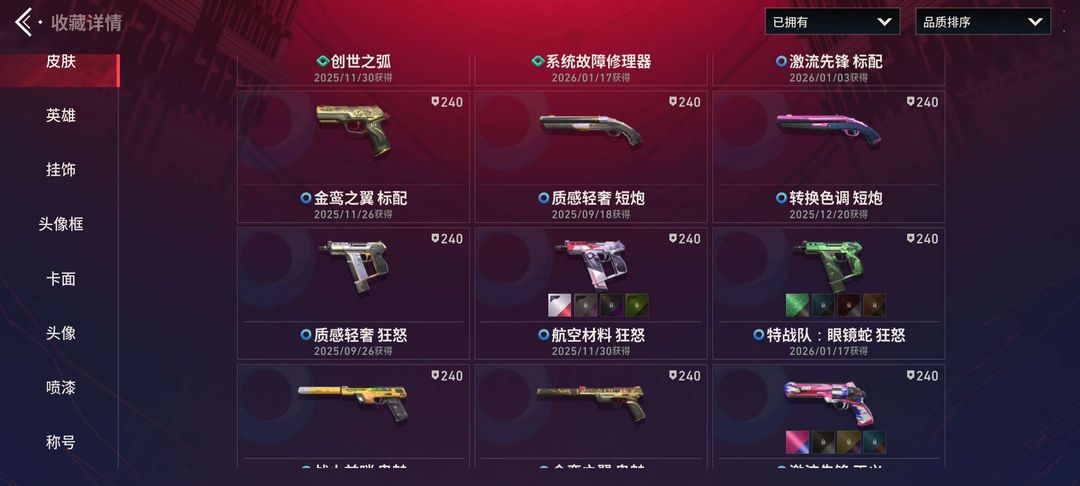 堕天大狙 怒海刀 海盖亚狂徒 光明哨位狂徒 781幻影 醒狮幻影 全息撩犬 青花瓷幻影 全满级