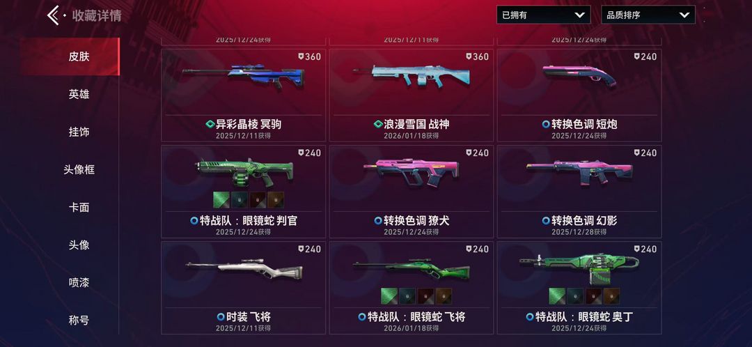 18级收藏家 通行证已开满级满皮1传说1终极,狂徒-艾沃莉的梦之翼 狂徒-光明哨兵,枪皮数量13