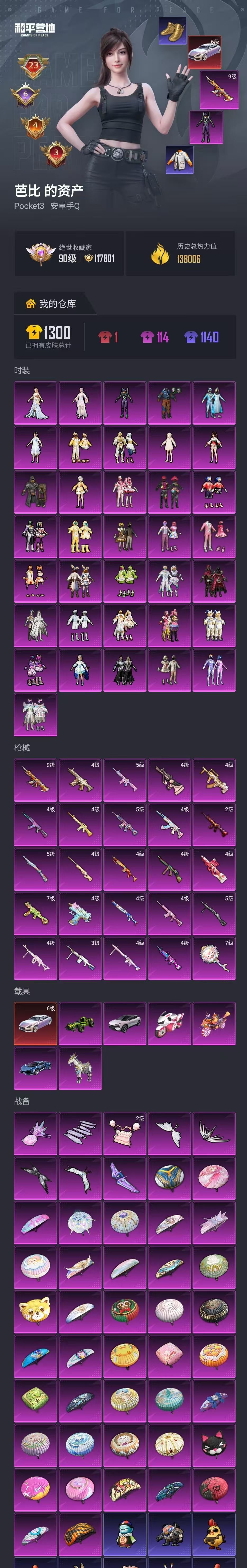 【安卓Q区】满级玛莎满级至情至圣无敌战神框小丑雪国都市赤蝎金鞋子紫螳螂黑丝巡查服赵灵儿巧克力粉熊背包