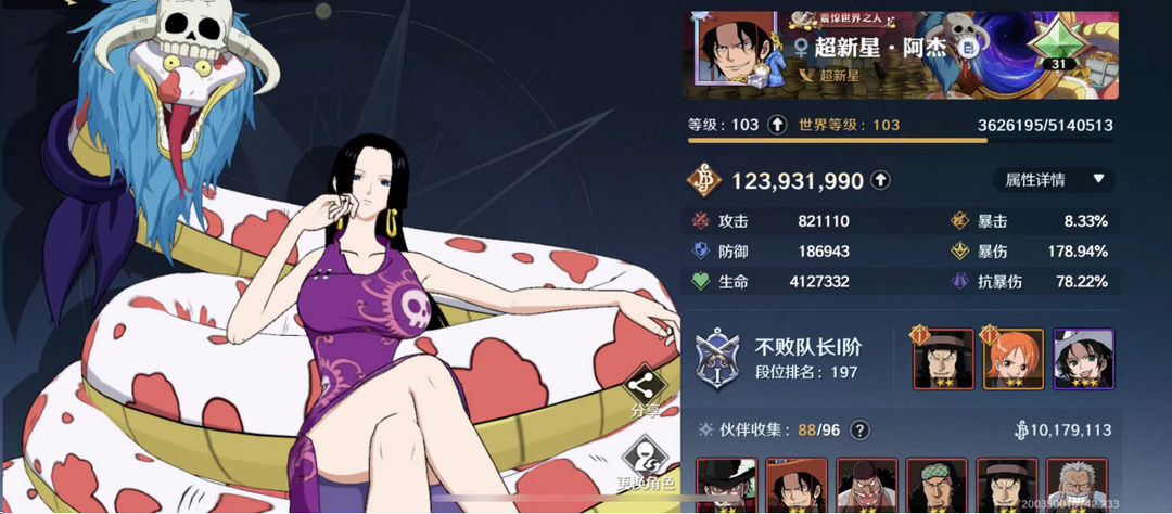 满红满角色1.31亿战力❤女帝❤战国❤黄猿❤罗❤路奇❤大熊❤莫利亚