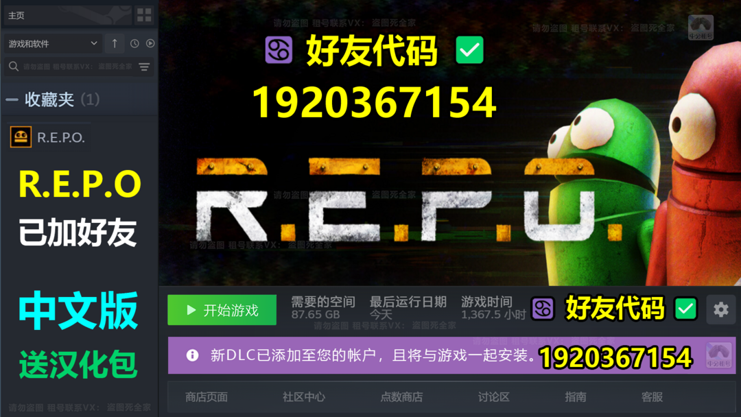 装备描述:R.E.P.O. /REPO✅汉化版✅相同标题封面账号已加好友!✨可联机❤️可加好友✅