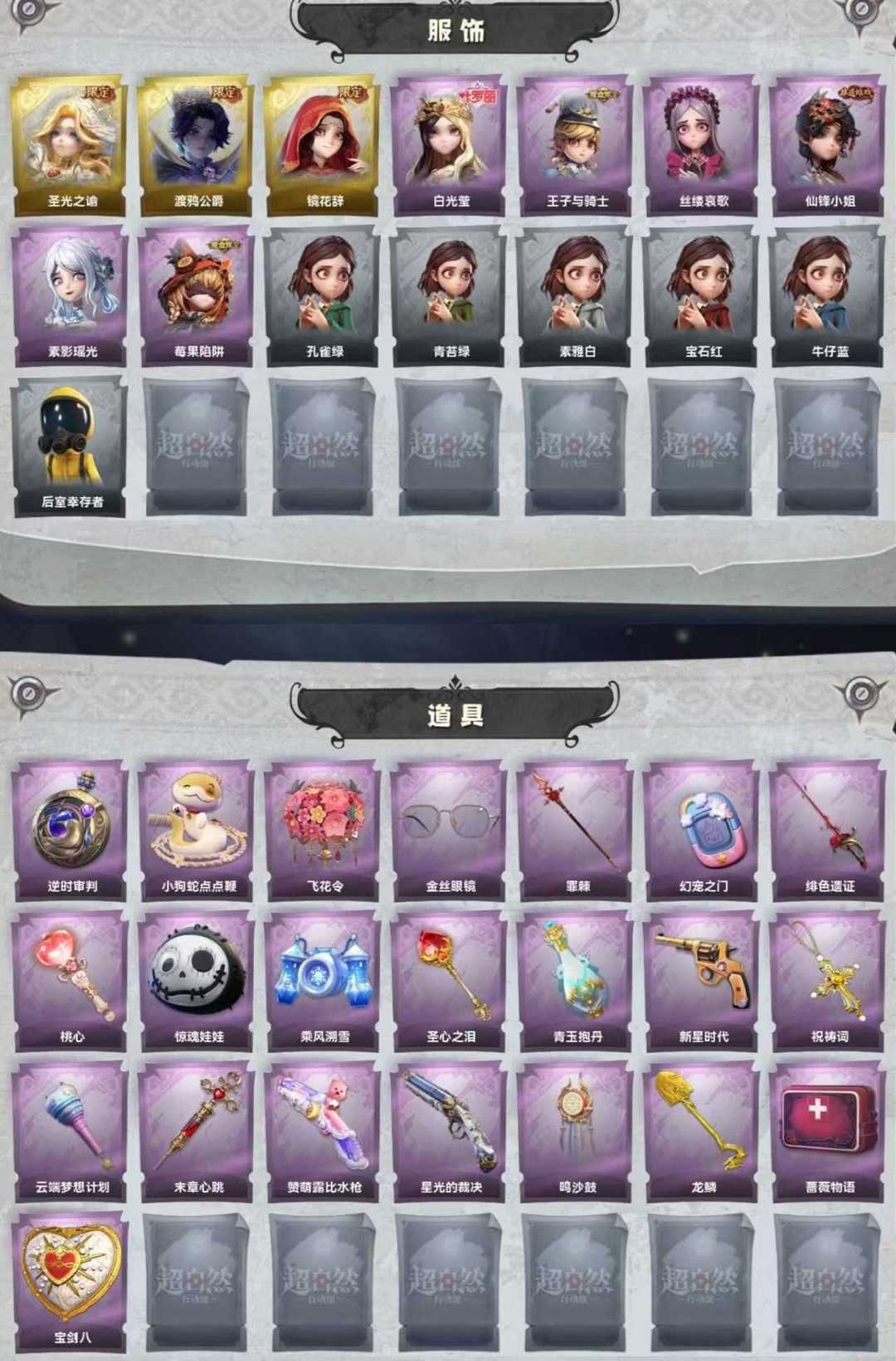 渡鸦公爵❤️圣光之谕❤️镜花辞❤️仙锋小姐❤️莓果陷阱❤️赞萌露比水枪❤️3金6紫22道具