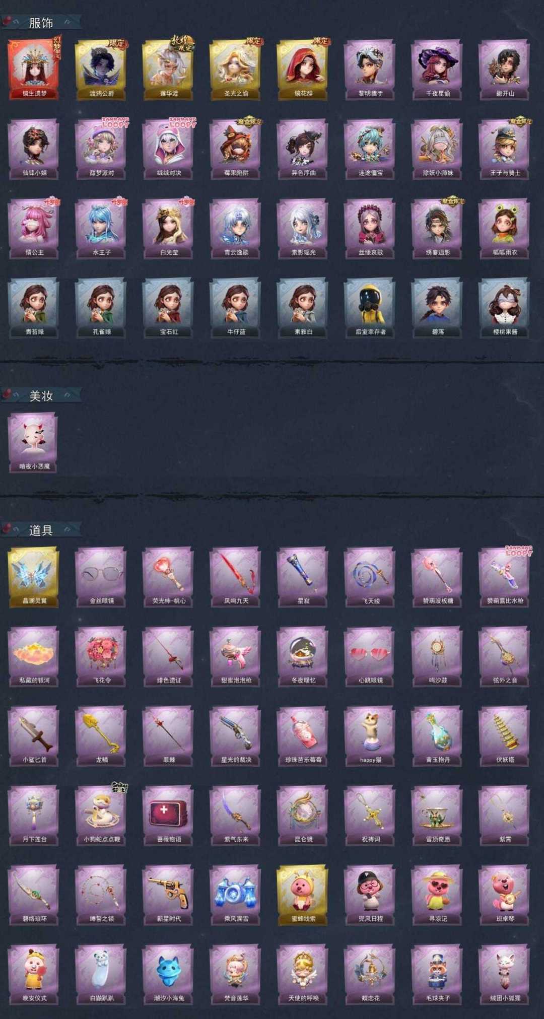 有兔宝❤️冬日限定道具❤️晶澜灵翼❤️蜜蜂线索❤️渡鸦公爵❤️1红4金19紫36道具❤️