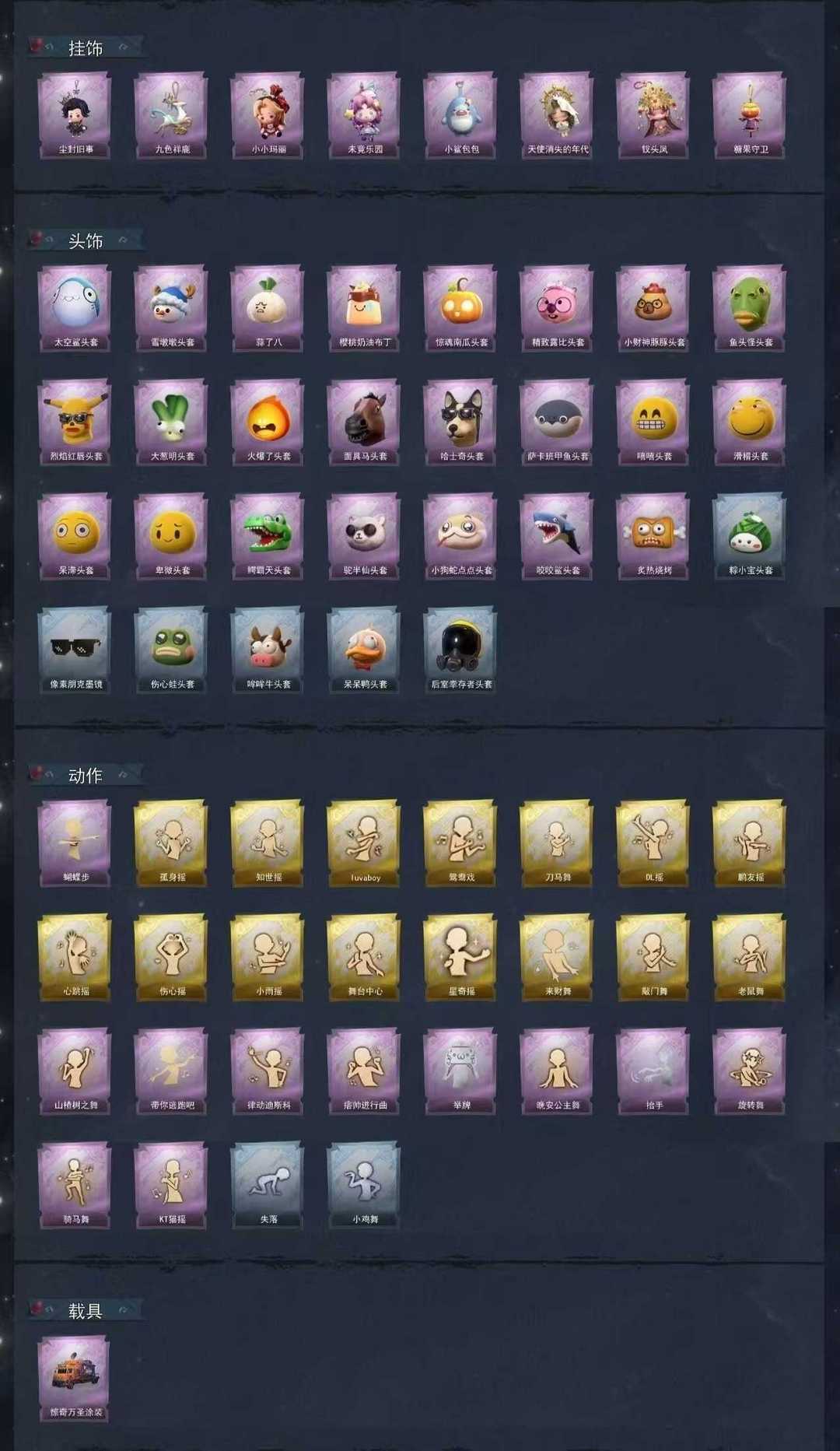 装备描述:因二级密码缘故【每单结束自动售出所有装备】 以保证每个宝子都有铲铲币使用 超自然出租认准【凡凡】 左下角收藏 享受不定时巨大优/惠折扣 【恶意撤单恶意使用铲铲币全平台拉黑】 全图鉴(限定的全有)【万圣节车皮】 1幻梦 6金耀世,所有池子满抽 S1/2/3/4/5/6赛季豪华【全道具皮肤】 有新皮肤马..上就会补 凡凡祝宝子们玩的开心~
