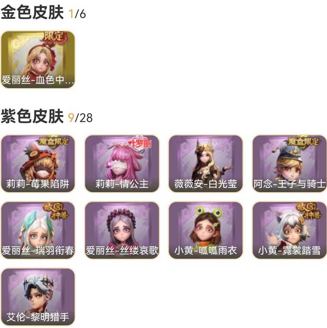 1金9紫⭐露露扇小恶魔美妆血色玛丽情公主⭐白光莹瑞羽衔春霓裳踏雪莓果陷阱⭐王子与骑士绯红柴郡猫