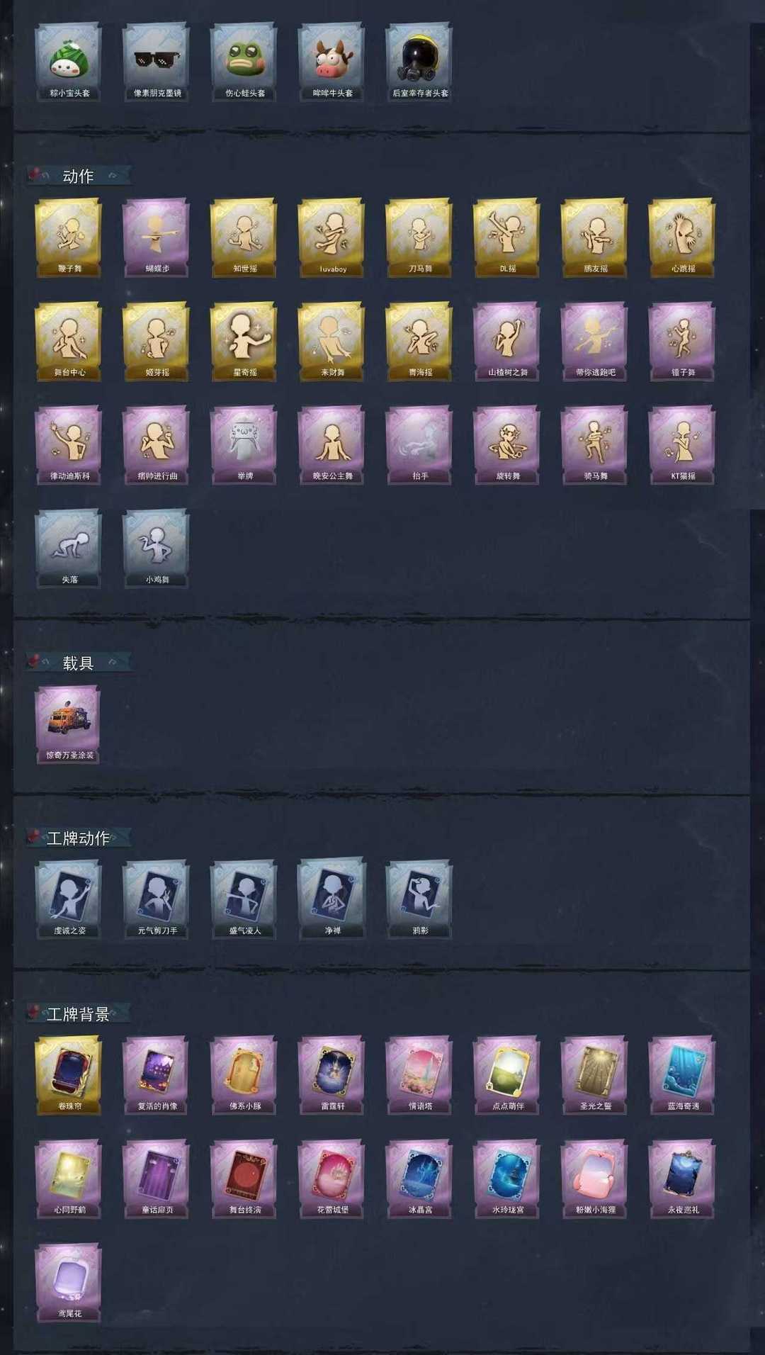 装备描述:因二级密码缘故【每单结束自动售出所有装备】 以保证每个宝子都有铲铲币使用 超自然出租认准【凡凡】 左下角收藏 享受不定时巨大优/惠折扣 【恶意撤单恶意使用铲铲币全平台拉黑】 全图鉴(限定的全有)【万圣节车皮】 1幻梦 6金耀世,所有池子满抽 S1/2/3/4/5/6赛季豪华【全道具皮肤】 有新皮肤马..上就会补 凡凡祝宝子们玩的开心~