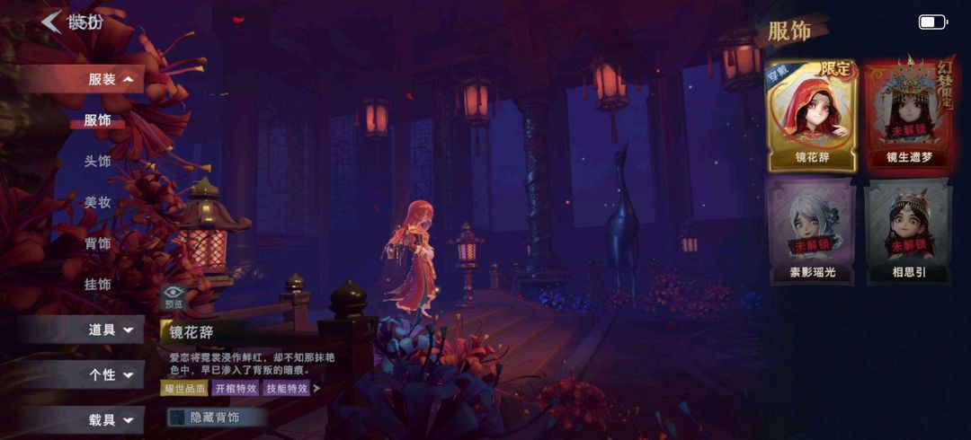 装备描述:【金色皮肤】逍遥-莲华渡、薇薇安-圣光之谕、巫铃儿-镜花辞 【紫色皮肤】爱丽丝-丝缕哀歌、逍遥-绣春逍影、小黄-呱呱雨衣 【道具皮肤】喷气背包-乘风溯雪、音响-鸣沙鼓、转轮手枪-新星时代、摸金符-祝祷词、夜视仪-金丝眼镜、刺刀-碧络琅环、急救包-蔷薇物语、电击枪-甜蜜泡泡枪、音响-happy猫、摸金符-花落精绝、传送按钮-昆仑镜、腰包-宝剑八、背饰-天使的呼唤、背饰-蝶恋花 【头饰】惊魂南瓜头套、小财神豚豚头套、鱼头怪头套、烈焰红唇头套、大葱明头套、火爆了头套、面具马头套、哈士奇头套、萨卡班甲鱼头套、嘻嘻头套、滑稽头套、呆滞头套、卑微头套、小狗蛇点点头套、咬咬鲨头套、炙热烧烤、像素朋克墨镜、后室幸存者头套