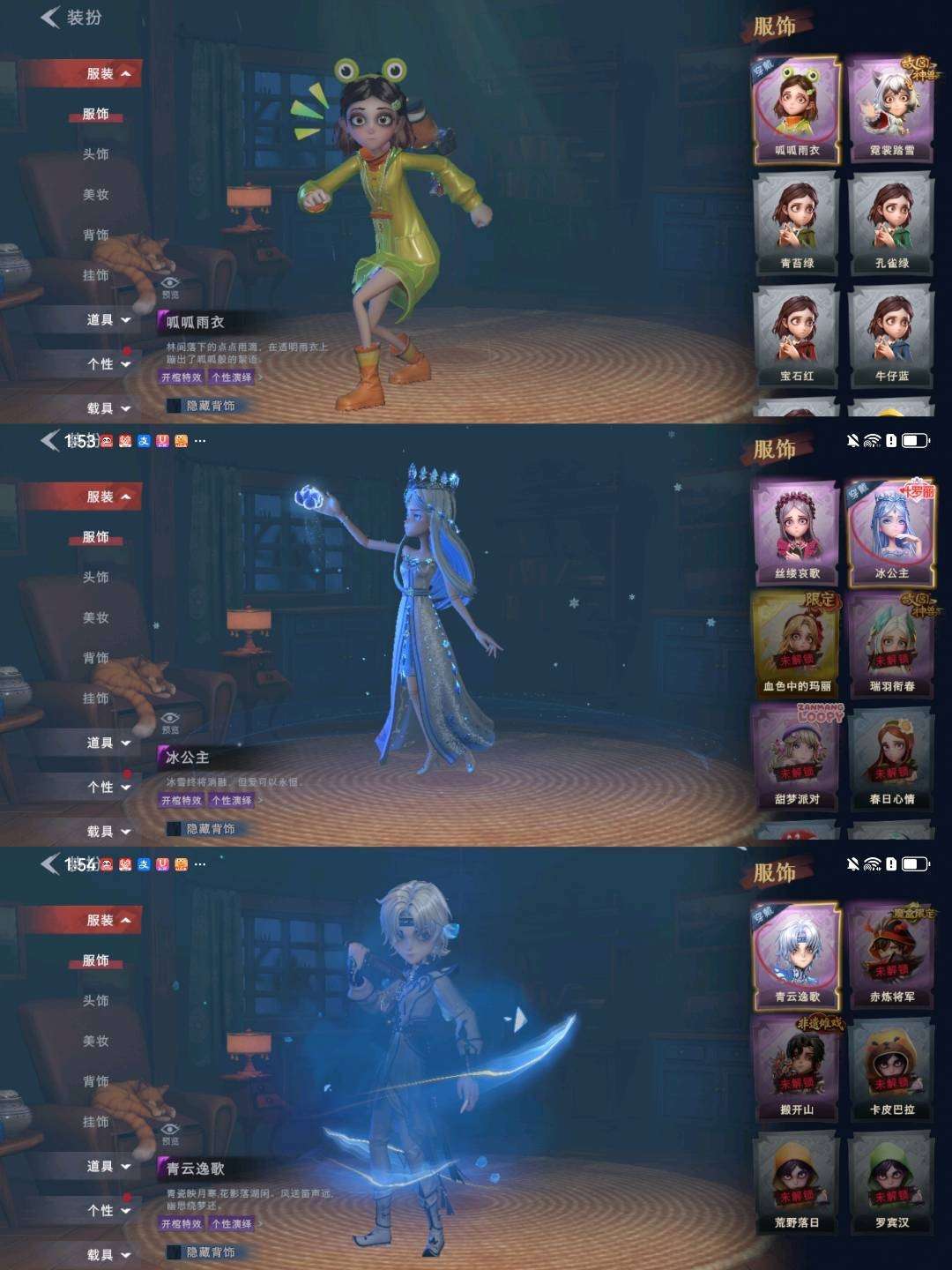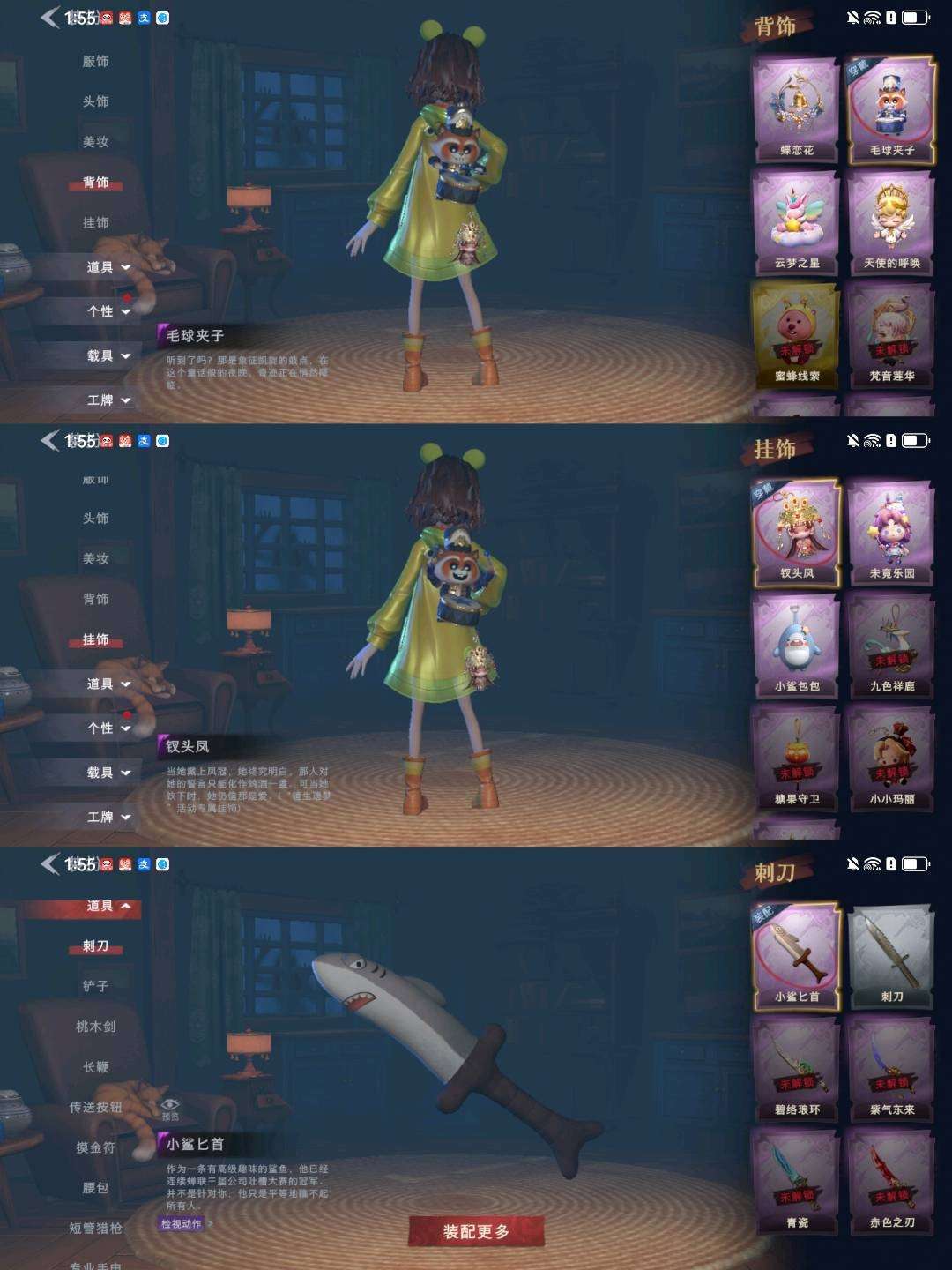 装备描述:【员工】小黄、爱丽丝、零、阿念、逍遥、薇薇安、巫铃儿、莉莉、艾伦、爱德华、兰 【金色皮肤】逍遥-莲华渡、薇薇安-圣光之谕、巫铃儿-镜花辞 【紫色皮肤】阿念-王子与骑士、莉莉-情公主、艾伦-水王子、爱丽丝-冰公主、小黄-霓裳踏雪、零-青云逸歌、爱丽丝-丝缕哀歌、小黄-呱呱雨衣 【道具皮肤】铲子-龙鳞、音响-happy猫、额外的背包-飞花令、桃木剑-最后的独角兽、转轮手枪-新星时代、摸金符-紫霄、摸金符-花落精绝、音响-鸣沙鼓、刺刀-小鲨匕首、铲子-圣心之泪、急救包-蔷薇物语、短管猎枪-星光的裁决、背饰-云梦之星、背饰-天使的呼唤、背饰-蝶恋花、背饰-毛球夹子 【头饰】鱼头怪头套、烈焰红唇头套、大葱明头套、火爆了头套、面具马头套、哈士奇头套、萨卡班甲鱼头套、嘻嘻头套、滑稽头套、呆滞头套、卑微头套、炙热烧烤、像素朋克墨镜、后室幸存者头套