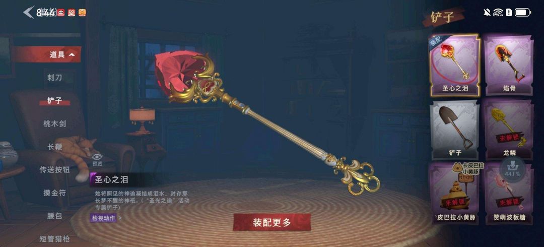 装备描述:员工】小黄、爱丽丝、零、阿念、逍遥、薇薇安、巫铃儿、莉莉、艾伦、爱德华、兰 【金色皮肤】小黄-遗失的童话 【紫色皮肤】零-赤炼将军、薇薇安-黑月挽歌、阿念-王子与骑士、零-青云逸歌、爱丽丝-丝缕哀歌、小黄-呱呱雨衣 【道具皮肤】桃木剑-永眠曲、长鞭-小狗蛇点点鞭、音响-鸣沙鼓、刺刀-小鲨匕首、铲子-圣心之泪、急救包-蔷薇物语、刺刀-赤色之刃、短管猎枪-星光的裁决、铲子-焰骨、喷气背包-乘风溯雪、转轮手枪-新星时代、摸金符-花落精绝、背饰-兔先生的时钟、背饰-蝶恋花、背饰-毛球夹子 【头饰】小财神豚豚头套、鱼头怪头套、烈焰红唇头套、火爆了头套、面具马头套、哈士奇头套、萨卡班甲鱼头套、嘻嘻头套、滑稽头套、呆滞头套、卑微头套、鳄霸天头套、驼半仙头套、小狗蛇点点头套、咬咬鲨头套、炙热烧烤、粽小宝头套、像素朋克墨镜、伤心蛙头套、哞哞牛头套、后室幸存者头套