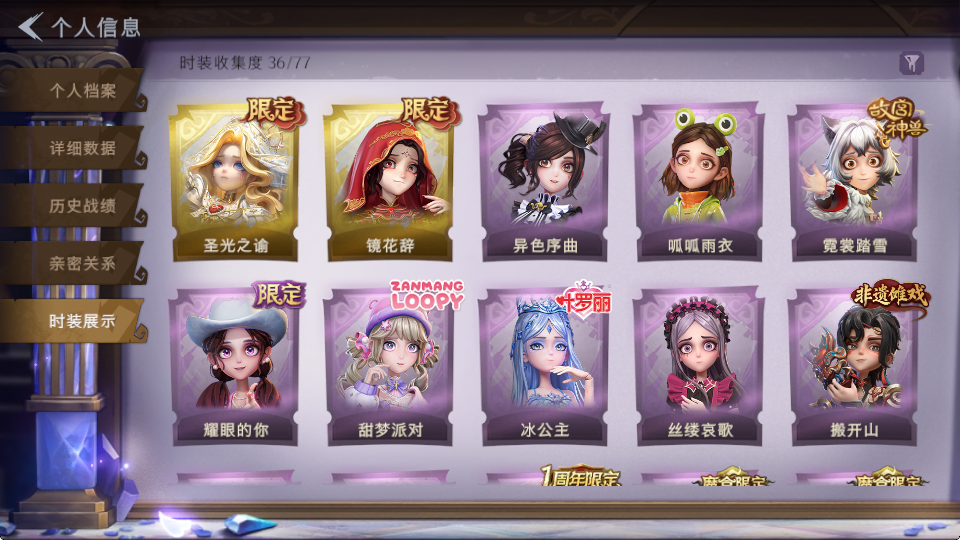 装备描述:皮肤:巫铃儿-镜花辞,薇薇安-圣光之谕,爱丽丝-甜梦派对,逍遥-绣春逍影,薇薇安-黑月挽歌,小黄-呱呱雨衣,巫铃儿-素影瑶光,艾伦-绒绒对决,阿念-庆宴绮愿,薇薇安-白光莹,莉莉-情公主,阿念-迷途僵宝,小黄-霓裳踏雪,爱丽丝-耀眼的你,爱丽丝-丝缕哀歌,兰-千夜星谕,零-搬开山,薇薇安-仙锋小姐,阿念-王子与骑士,莉莉-除妖小师妹,爱丽丝-冰公主,莉莉-莓果陷阱,小黄-异色序曲,零-青云逸歌;道具:腰包-宝剑八,闪光弹-金戈玄铜,铲子-圣心之泪,铲子-赞萌波板糖,夜视仪-敛花容,摸金符-花落精绝,急救包-蔷薇物语,急救包-土拨鼠捏捏,黄牛能量饮料-珍珠芭乐莓莓,除颤仪-冰晶般的代价,音响-happy猫,电击枪-权杖的许诺,桃木剑-最后的独角兽,喷气背包-乘风溯雪,电击枪-甜蜜泡泡枪,刺刀-碧络琅环,腰包-惊魂娃娃,夜视仪-金丝眼镜,夜视仪-心跳眼镜,短管猎枪-星光的裁决,音响-鸣沙鼓,长鞭-小狗蛇点点鞭,转轮手枪-新星时代,传送按钮-浮生一梦,音响-月光奏鸣曲,折扇-露露扇,铲子-龙鳞,桃木剑-永眠曲,传送按钮-幻宠之门,刺刀-小鲨匕首,长枪-罪棘,短管