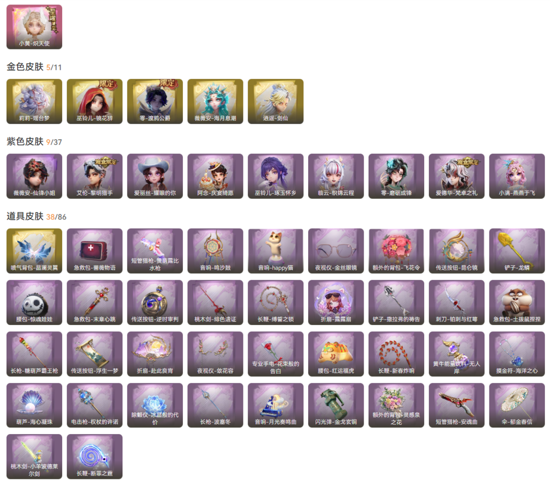 装备描述:1星耀5耀世 1粉5金车 晶澜灵翼 炽天使 镜花辞、零-渡鸦公爵、莉莉-瑶台梦、逍遥-剑仙、薇薇安-海月息潮 薇薇安-仙锋小姐、艾伦-黎明猎手、阿念-庆宴绮愿、爱丽丝-耀眼的你、零-磨砺成锋、临云-织锦云程、巫铃儿-琢玉怀乡、爱德华-梵卓之礼、小羊波德莱尔剑 小满-燕燕于飞