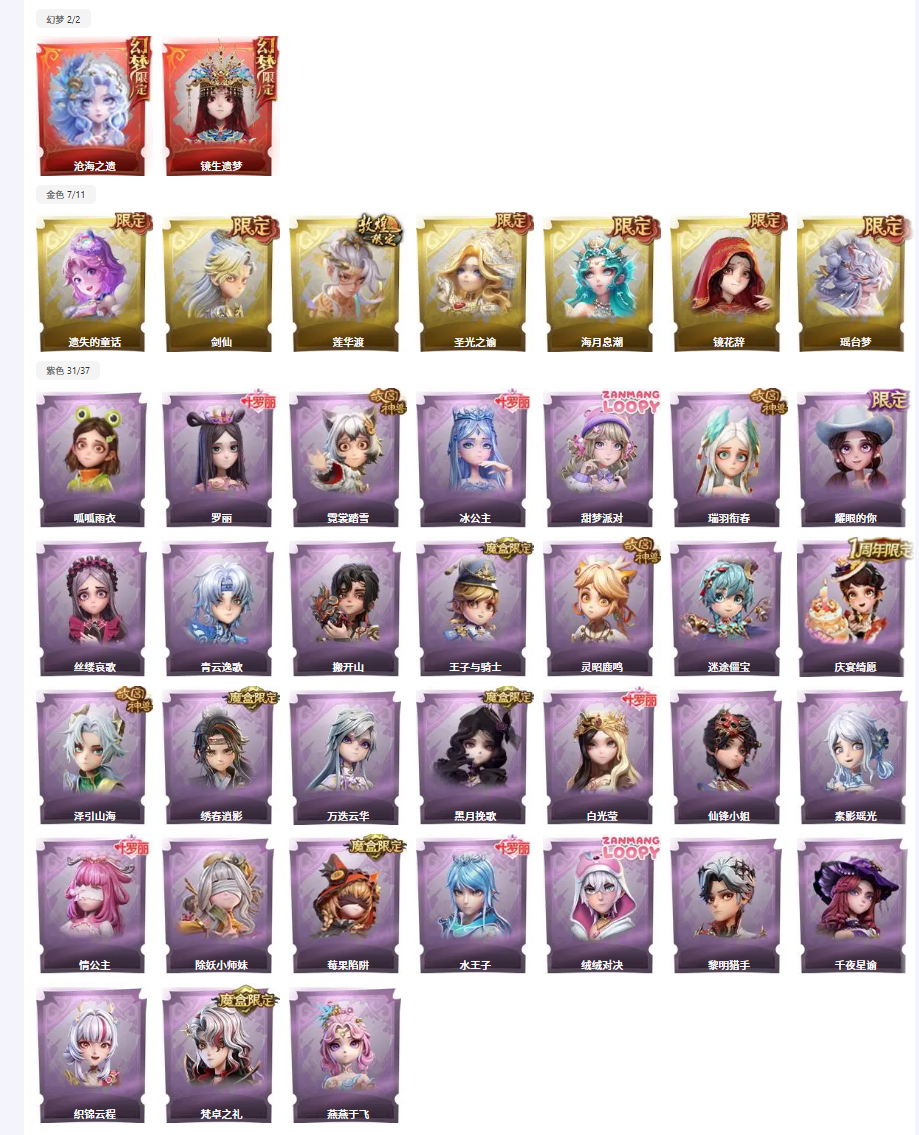 ✨满图鉴✨2红7金31紫✨沧海之遗✨剑仙✨莲华渡✨瑶台梦✨海月✨圣光✨泽引山海✨绣春逍影✨