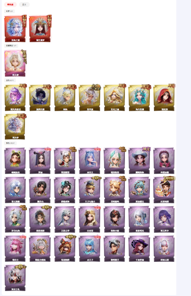 ✨满图鉴✨2红1粉8金29紫✨沧海之遗✨剑仙✨莲华渡✨遗失的童话✨渡鸦✨泽引山海✨绣春逍影✨海月✨