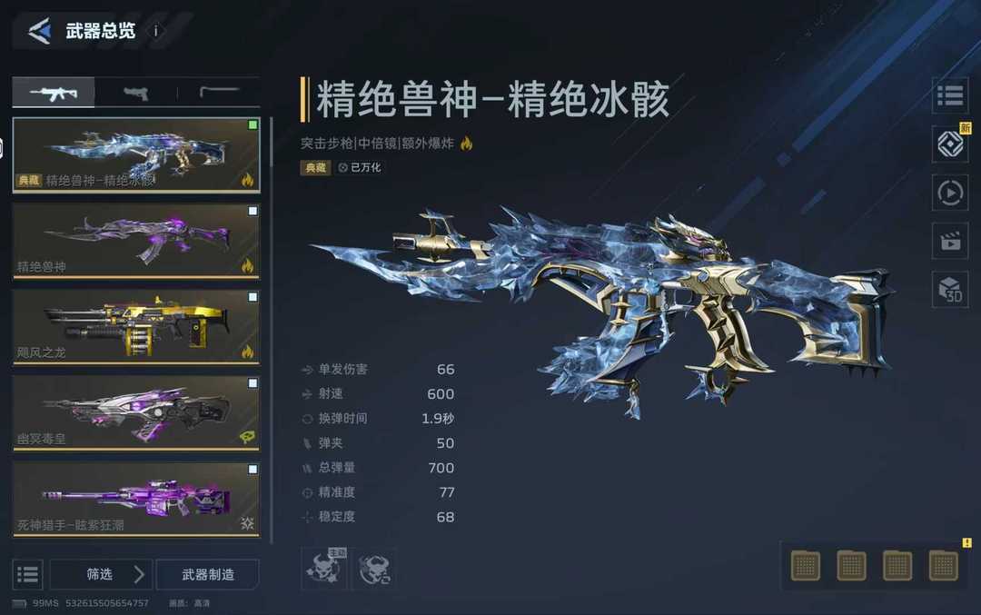 极品号安琪儿血色蔷薇,(双典藏皮)冰骇兽神与死神,复活可购买,满金枪金刀,满金插件,机甲也基本满配件