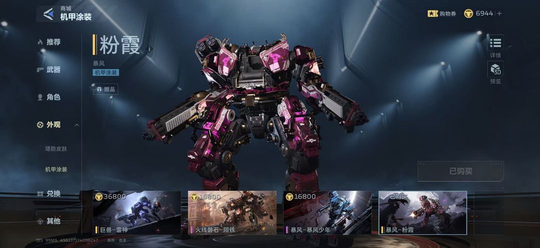 全典藏武器,角色有精绝女王+悦+雪莉扬缇娜,暴风机甲粉皮