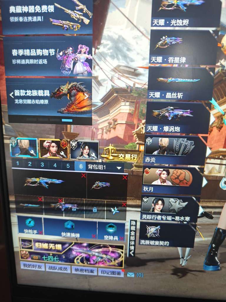 天耀套,天启精魄,绀蓝三件套,龙姬,各种武器,PVP武器,所有模式都可以,排位低分可以炸鱼