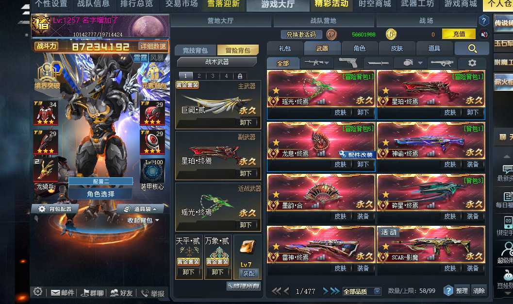 装备描述:近期新增V11专属人物寰宇和幻灵欢迎体验!并非全部展示,篇幅有限~ 配件✨归墟血契丨星斗丨天际丨寂灭丨破魂丨岚翼丨乾坤丨海神之怒丨美杜莎之吻丨棱晶丨赤血之源丨焚风丨鬼刃修罗丨奏鸣丨藤木蔓芯丨幻宇星涡丨创世星环丨闪击丨尘埃丨幽冥丨绝境丨玄天丨末世丨 彩金✨晶刹贰丨巨阙贰丨秩序贰丨广陵贰 x3丨万象贰 x3丨魅影贰 x3丨两仪贰丨飞梭贰 x2丨纵横贰 x8丨天枢贰 x3丨玉衡贰 x3丨风神贰丨不灭星核贰丨撼天贰丨塞壬贰丨锁宙贰丨镇宇贰丨蛇舞贰 x3丨次元之星贰 x2丨裁决之炎贰 x2丨涤罪圣辉贰 x2丨磁暴贰丨黯水晶-绝贰 x5丨封印魔典贰丨 传说✨瑶光终焉丨星珀终焉丨神谕终焉丨墨韵合丨神谕终焉丨龙息终焉丨无限EX丨碎星终焉丨雷神终焉丨无尽光影终焉 x3丨SCAR-影魔 x2丨RPK主宰丨AK47主宰丨屠魔丨其他✨蝶舞丨浪漫花束 x8丨迷你液氮发生器 x3丨火铳丨灰核贰 x2丨激素贰 x3丨冰河丨妙笔极丨禁止通行丨 道具✨变异血清丨弹匣丨 皮肤✨紫水晶丨金蛇丨皇家毒牙丨御雷丨 角色✨寰宇丨幻灵丨安琪拉丨露娜丨黄金比伯丨小乔丨马超丨弓腰姬丨伊利亚丨龙女丨阿瑞斯丨派拉丨蛮王丨月兔精丨童子丨青蛇
