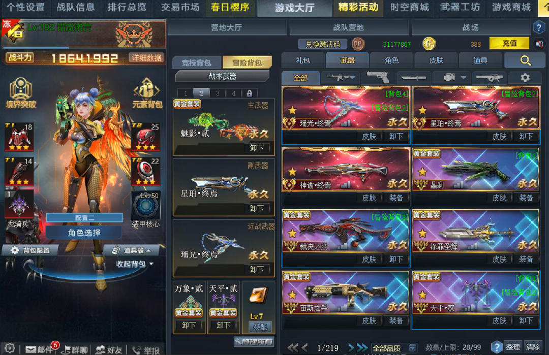 装备描述:瑶光终焉✨星珀终焉✨神谕终焉✨满巨阙贰秩序贰广陵贰魅影贰两仪贰✨