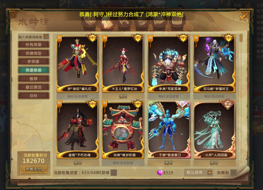 162万神兵尊6 主物理套 海量玩具 5星灵 极仙鹿鸣 幻神4年少皮肤吕布黄忠马良韩当 皮肤633个